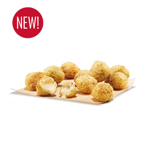 Ten tasty cheese bites, bursting with camembert cheese in a crispy crumb coating.