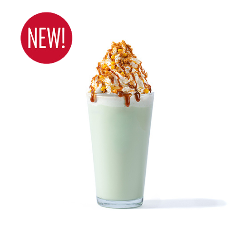 | Our classic latte with banana and matcha syrup, topped with cream and banoffee pearls and drizzled with banoffee sauce. |